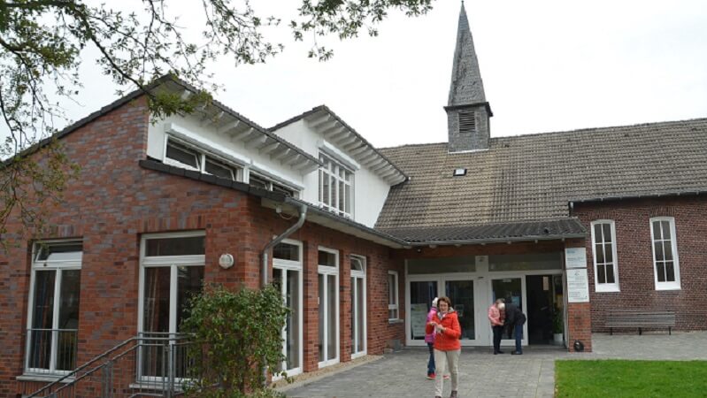 Olfen. Nach dem Ende des II. Weltkrieges 1945 nahm die Stadt Olfen weit über 1000 Flüchtlinge und Vertriebene aus den ehemaligen deutschen Ostgebieten auf. Es waren überwiegend evangelische Familien, die es hierhin verschlug. Bis zu diesem Zeitpunkt war die Evangelische Konfession in Olfen und Vinnum eher schwach vertreten. Auch die gräfliche Familie auf Schloss Sandfort gehörte dazu. Doch nun wuchs die Zahl der Gläubigen enorm. Es sprach sich schnell herum, dass auf dem Schloss alle 14 Tage ein Gottesdienst von Lüdinghausener Geistlichen abgehalten wurde. Wenn es soweit war, machten sich zahleiche evangelische Christen von Olfen aus zu Fuß auf den Weg. Doch bald reichte selbst hier der Platz nicht mehr aus. 1947 nutzte man den Saal im „Leonhaus“, den die katholische Kirchengemeinde zur Verfügung stellte. Doch letztlich siegte der Wunsch nach einem eigenen Kirchengebäude. Olfen war einst ein Pfarrbezirk der Kirchengemeinde Lüdinghausen. 1967 wurde es mit Vinnum und Seppenrade zu einer selbstständigen Kirchengemeinde.