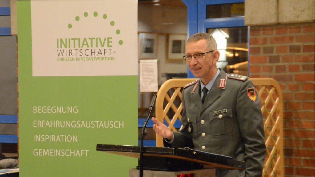 Münster. Zu einer Unternehmer-Begegnung der Regionalgruppe Münsterland lud die Initiative für evangelische Verantwortung in der Wirtschaft e.V. am 16. Dezember 2022 ins Paul-Gerhard-Haus Münster ein. Zahlreiche Teilnehmer aus verschiedenen Regionen Deutschlands hörten den Vortrag von Oberst i.G. Professor Dr. Matthias Rogg, Potsdam, zum Thema „Krieg in der Ukraine – eine Einordnung in historischer, sicherheitspolitischer und friedensethischer Perspektive“.
