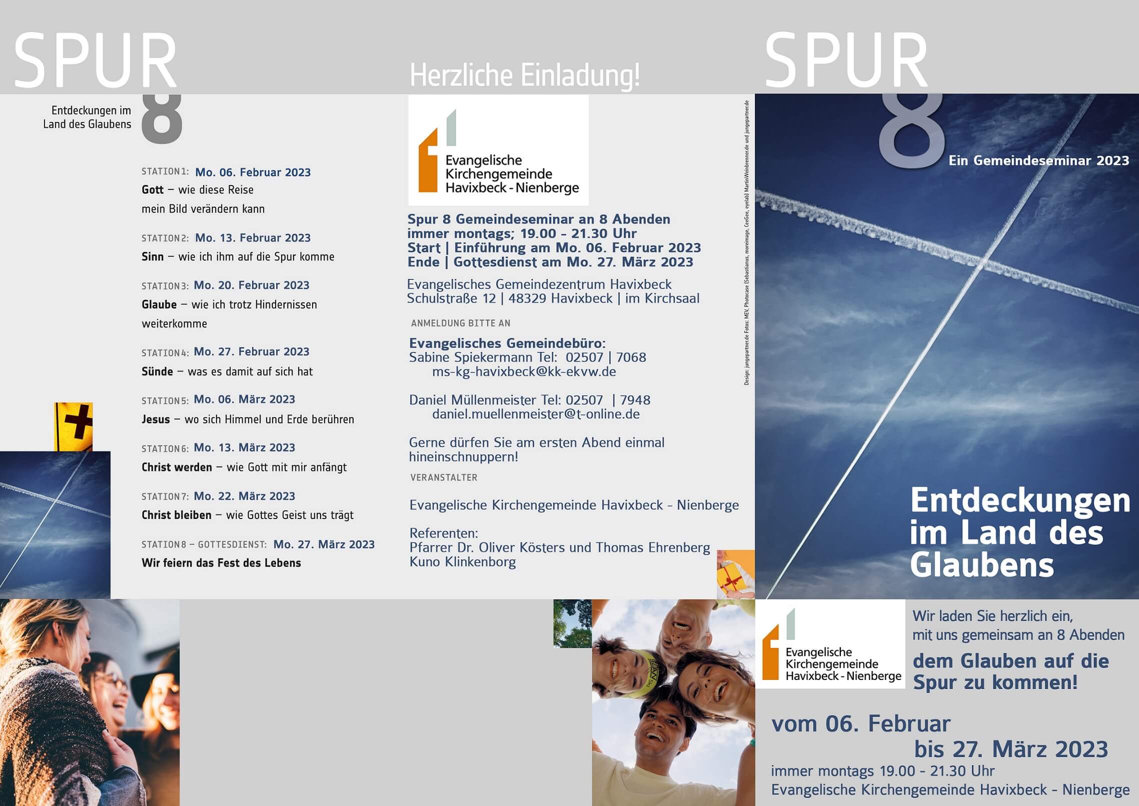 Münster-Havixbeck. Was heißt „glauben“ eigentlich? Wer ist Gott und was hat er mit mir und meinem Leben zu tun? Muss ich glauben, was die Kirche erzählt? Oder worum geht es? Fragen wie diese liegen dem „Glaubenskurs Spur 8“ zugrunde, den die evangelische Kirchengemeinde in Havixbeck nach mehreren Jahren Pause wieder anbietet.