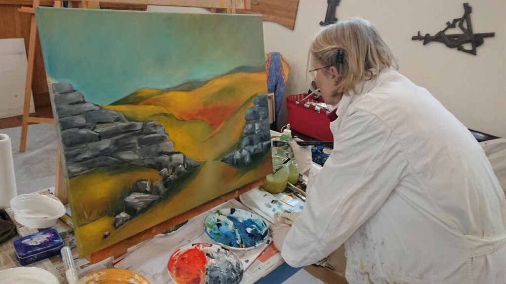 Kinder und Jugendliche aus der Gemeinde und Frauen des interkulturellen Frauencafés sind ebenfalls kreativ tätig gewesen und haben im Austausch mit den Künstler:innen des Ateliers eigene Werke geschaffen und bereichern die Ausstellung mit ihren Bildern.