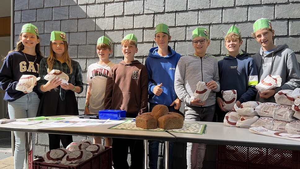 Mit Hinweis auf das Vaterunser, in dem es heißt „Unser tägliches Brot gib uns heute”, machten die Jugendlichen in dem Gottesdienst deutlich: “Wir glauben, dass Gott uns alles schenkt, was wir brauchen.“ Die unsichtbaren Dinge wie Liebe, Freundschaft, Güte und Segen genauso wie die sichtbaren: Ein Dach überm Kopf, Wasser und Brot. Dafür waren sie in einer Biovollkornbäckerei aktiv, um mit professioneller Unterstützung selber Brote zu backen. Die stellvertretende Produktions- und Konditoreileiterin von “Cibaria” gab ihnen einen Einblick in das Bäckerhandwerk. Und so mischten die Konfis den Teig an, formten und backten selbst Brote.