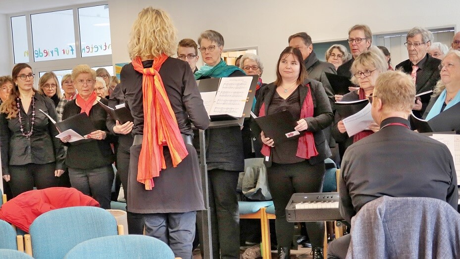Da war das letzte Lied des Chores „Da liegt ein Sehnen in uns“ und das gemeinsame Schlusslied der gesamten Gemeinde „Verleih uns Frieden gnädiglich“ ganz auf der Linie dieses nachdenklichen Gottesdienstes.