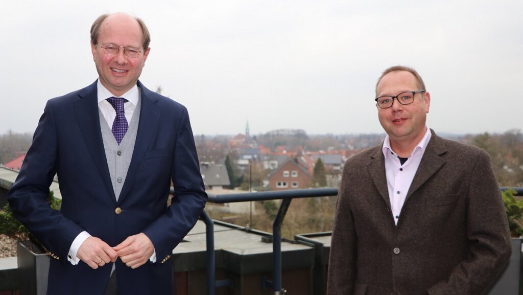 Feierten zusammen mit 200 Teilnehmenden ein ökumenisches Friedensgebet: (von links) Stadtdechant Jörg Hagemann, Superintendent Holger Erdmann, Weihbischof Dr. Stefan Zekorn, Pfarrer Friedrich Stahlhut (ACK) und Pfarrer André Sühling (ACK).