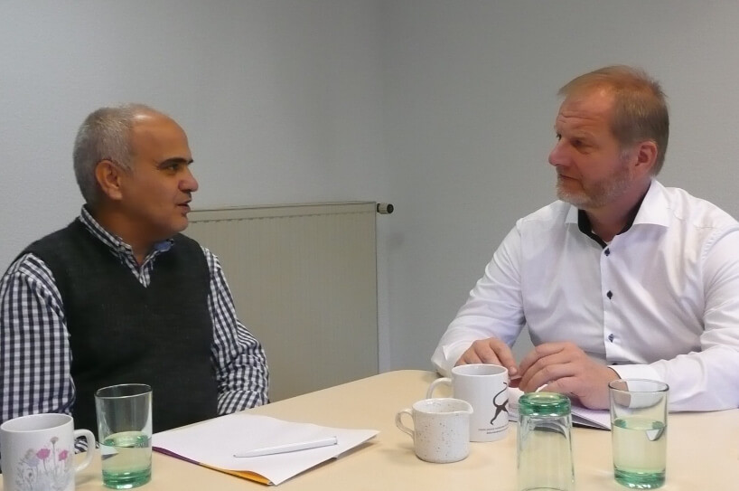 Saeid Samar informiert Wolfram Friedrich über die Situation von Geflüchteten im Münsterland.