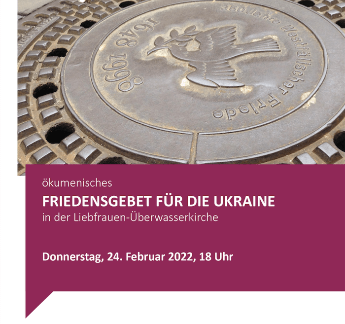 Einladung zum Ökumenischen Friedensgebet am 24.2.2022. Foto: Plakat, Stadtdekanat Münster.